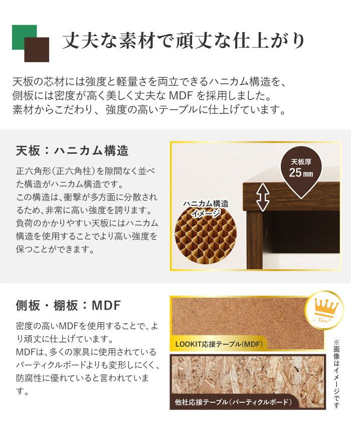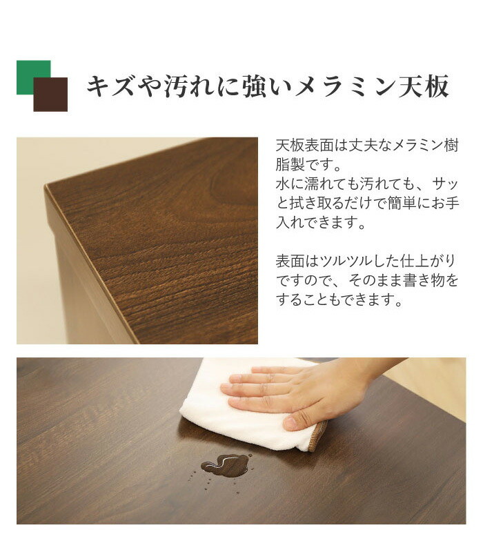 傷が付きにくく、汚れても拭き取りが簡単なメラミン化粧仕様です。