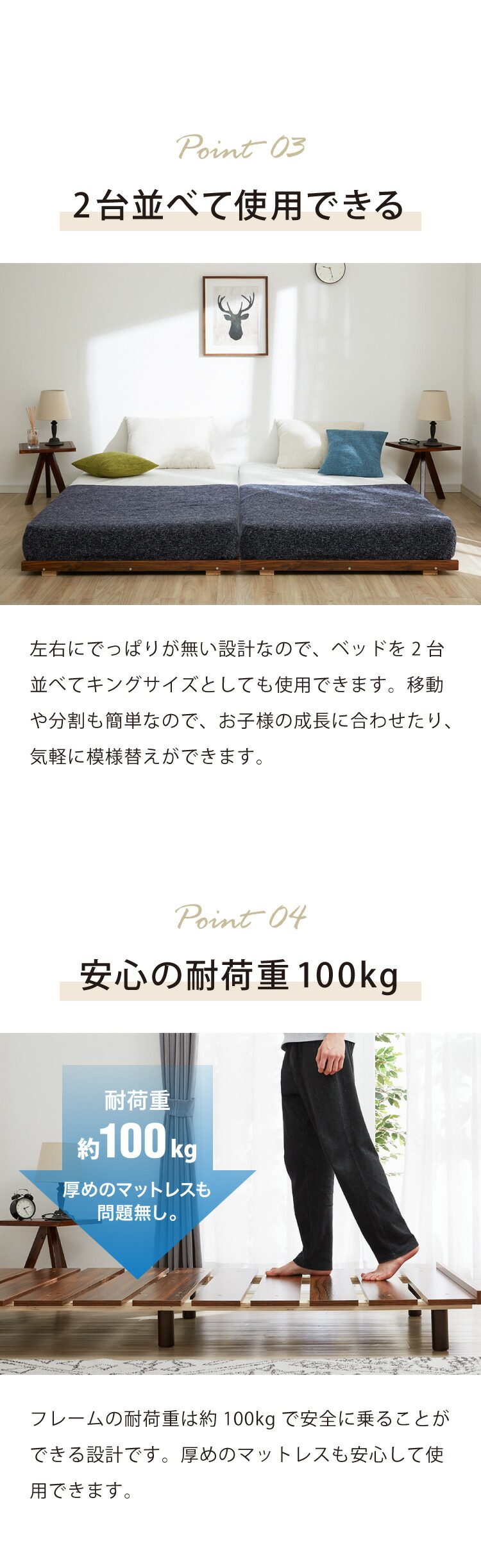 ・ベッドフレームは高さが3段階調整可能なので、お好みの高さに調整できます。