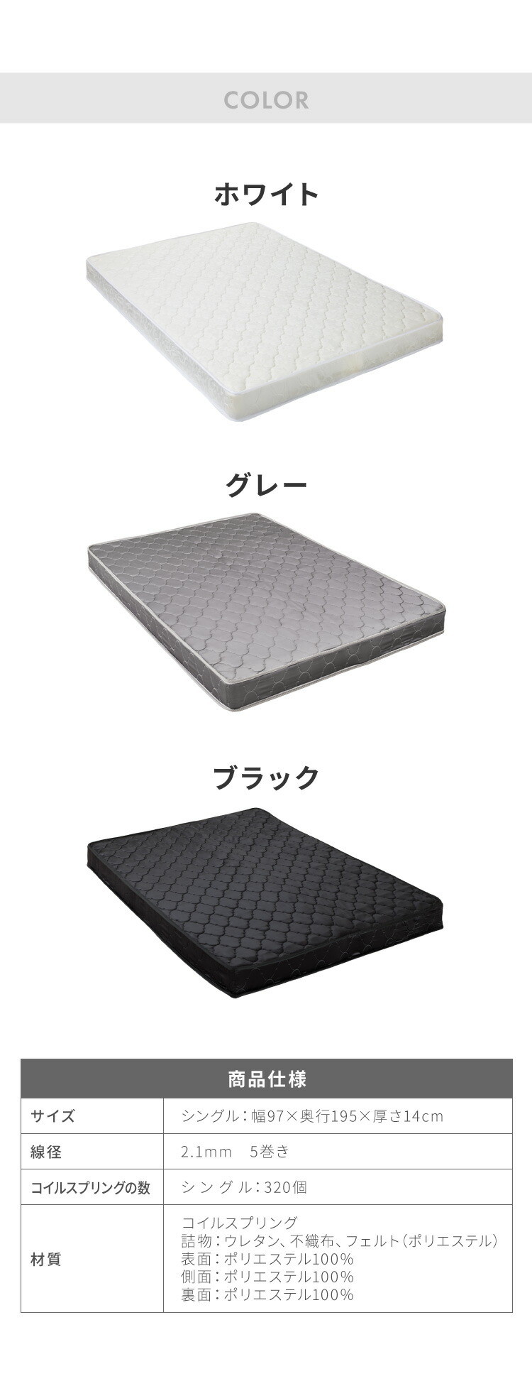 ・マットレスはコイル数320個の線形2.1mmで、強度が高いです。