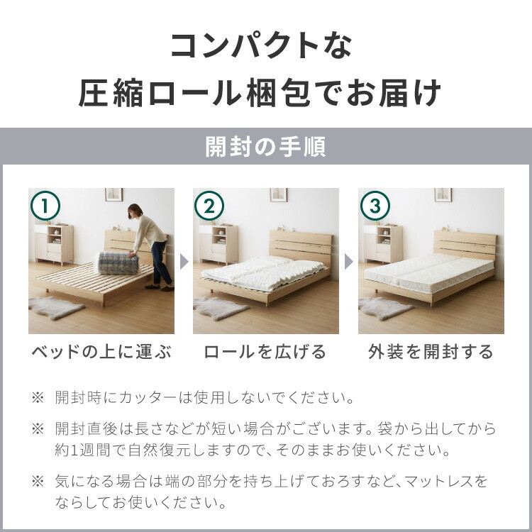| サイズ/寸法 | セミシングル:幅80×奥行195×高さ14cm シングル:幅97×奥行195×高さ14cm セミダブル:幅120×奥行195×高さ14cm ダブル:幅140×奥行195×高さ14cm クイーン:幅160×奥行195×高さ14cm キング:幅180×奥行195×高さ14cm |