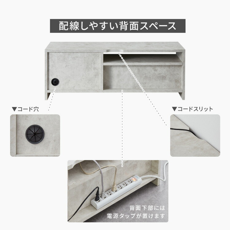 ・扉部分はコード穴がついているので、ルーターなど電源が必要なものも収納可能