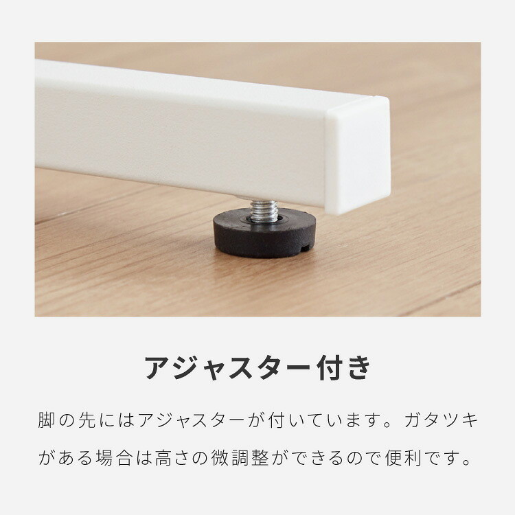 脚部4か所には、ガタつきを抑えるアジャスター付き。