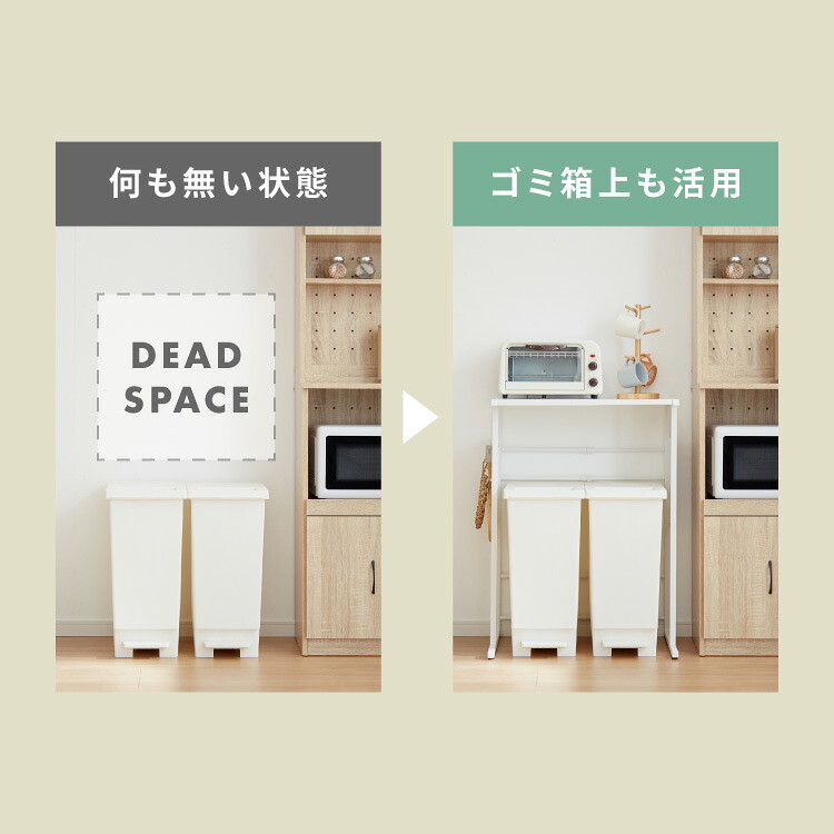 ゴミ箱上ラック 伸縮タイプ 幅38.5cm~幅62cm 45Lゴミ箱×2個用 キッチンスペースラック 1段 キッチンラック スチールラック ホワイト