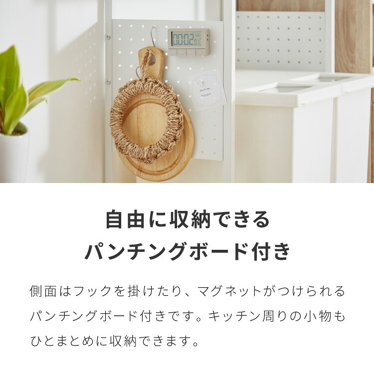 側面にはパンチングボードが付いており、自由に収納アレンジが可能です。