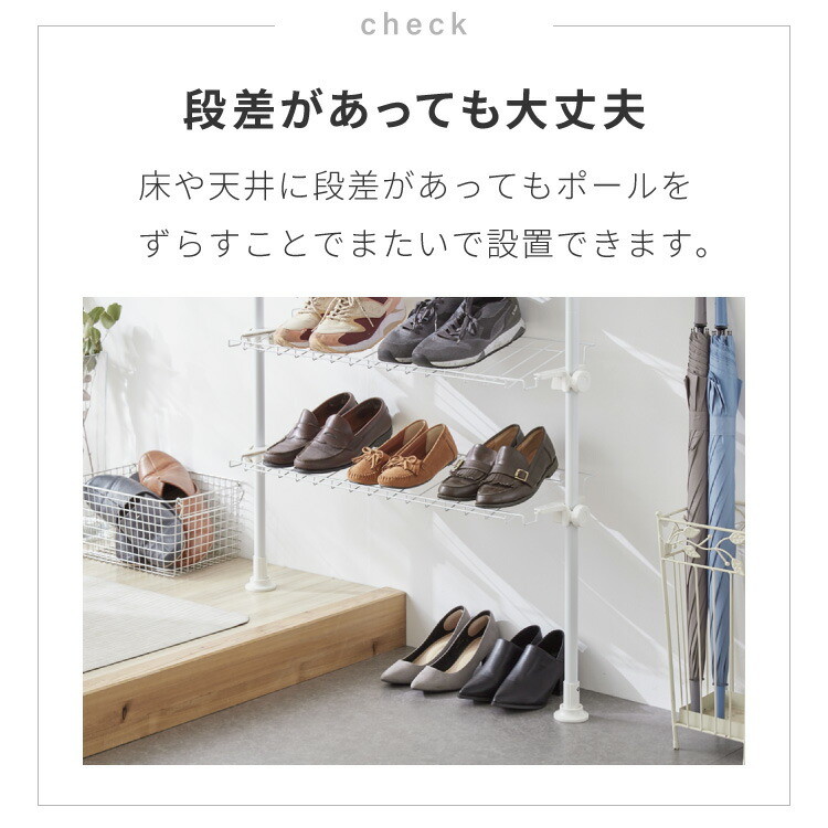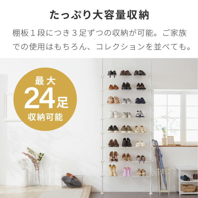 ・たくさんの靴を収納できる、突っ張り式のシューズラックです。