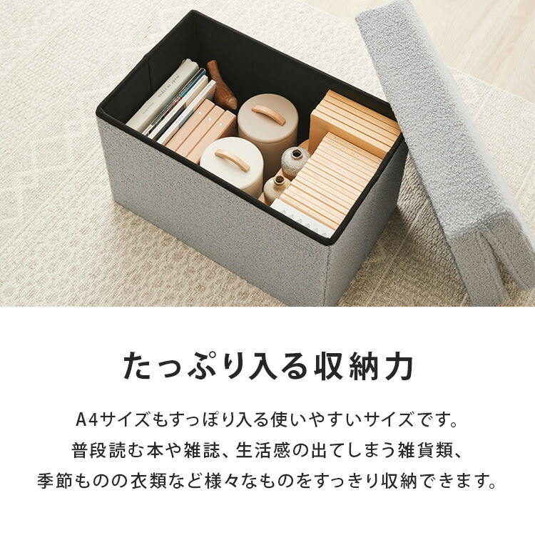 スツール 背付き ワイドタイプ 収納スツール コンパクト ブークレグレー