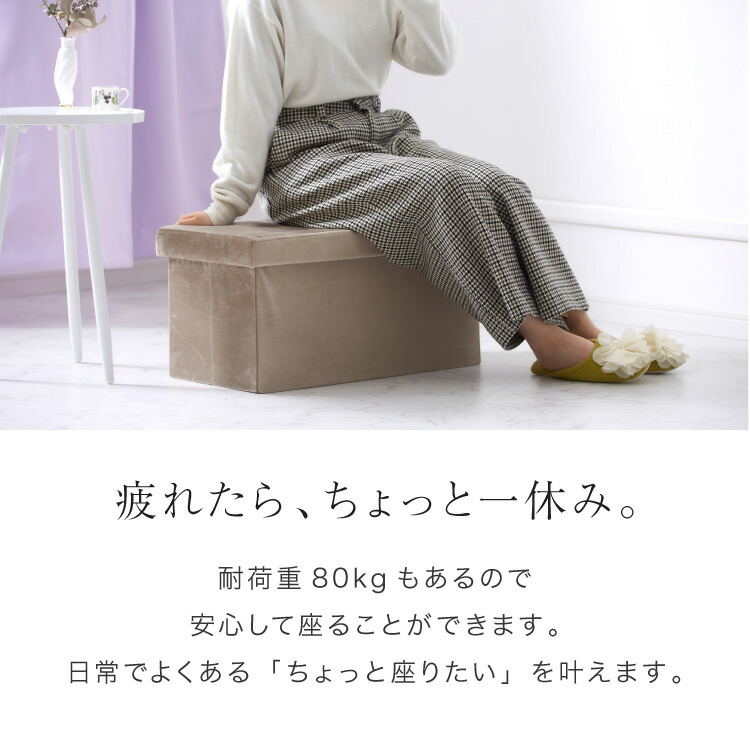 スツール 収納 コンパクト デザイン収納スツール ワイド 単品 折りたたみ ベルベットピンク 30×60cm