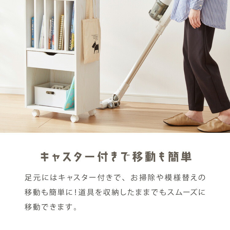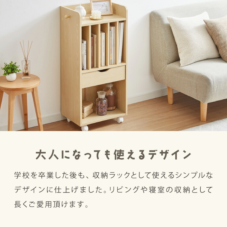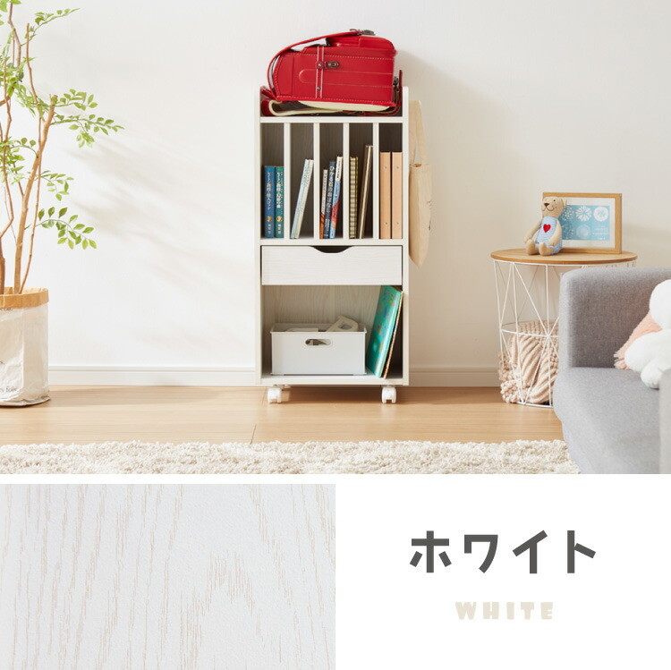 ランドセルラック 約幅40cm スリム コンパクト お片付けラック キャスター付き 引き出し フック ホワイト