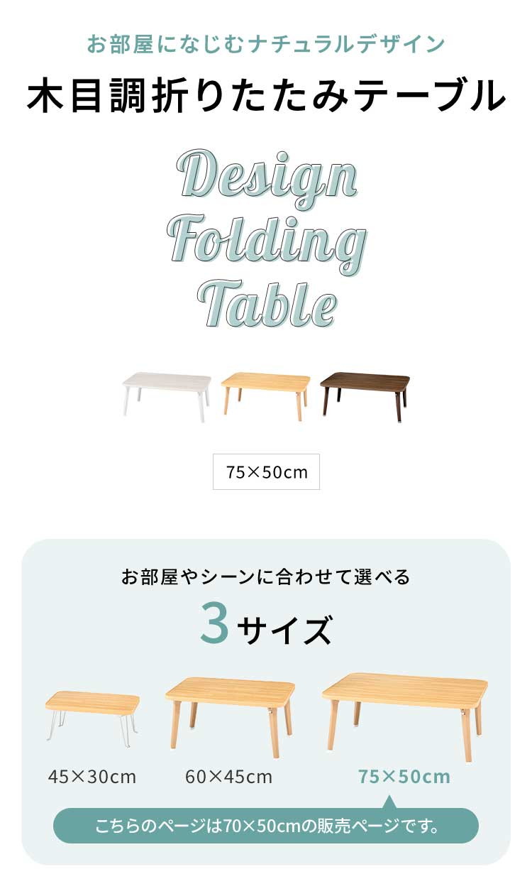 折りたたみテーブル 木目調 75×50cm コンパクト 省スペース 折り畳み 折れ脚 韓国 インテリア 北欧 ホワイト