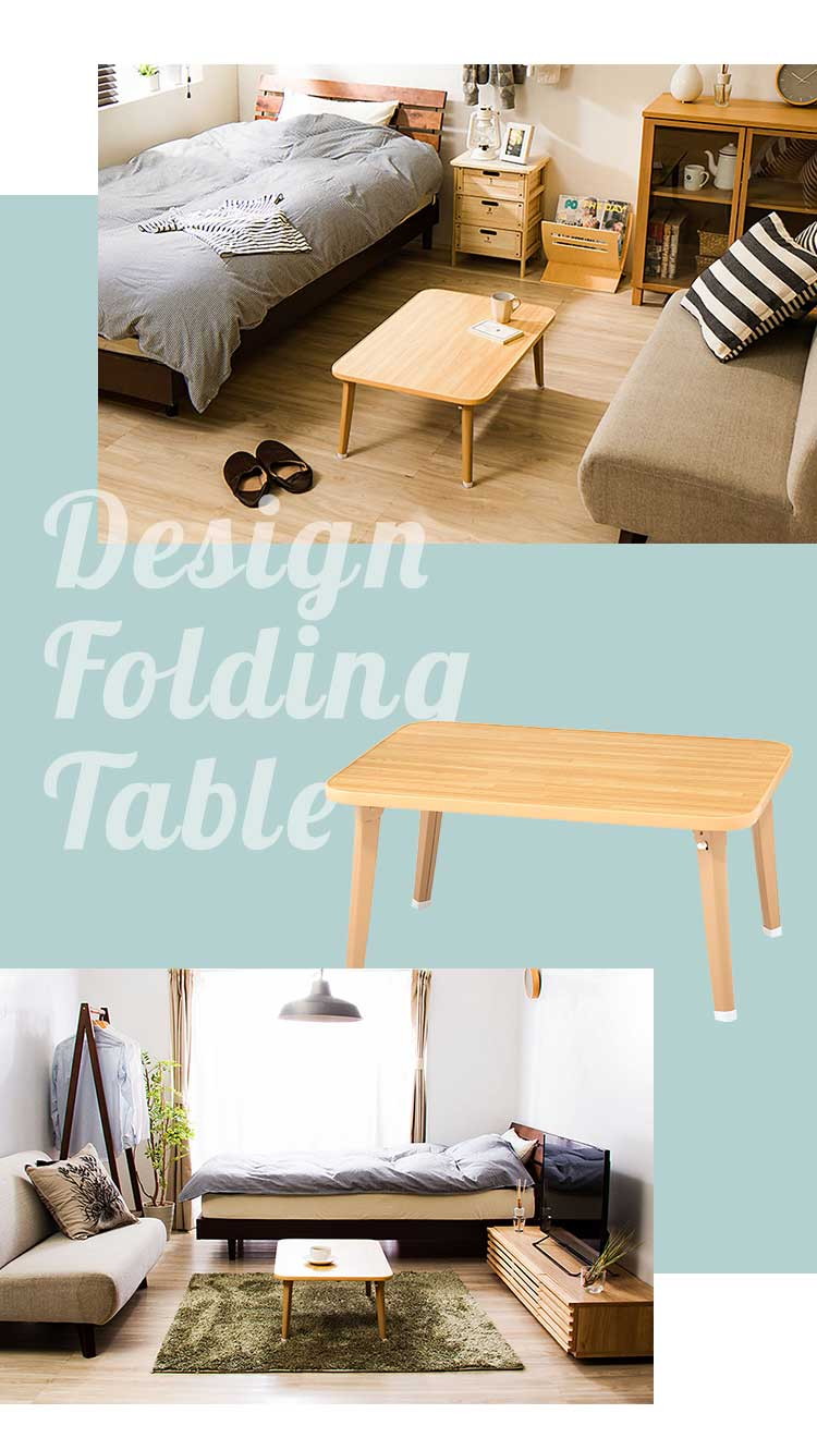 ・ナチュラルな木目調が美しい折りたたみテーブル。