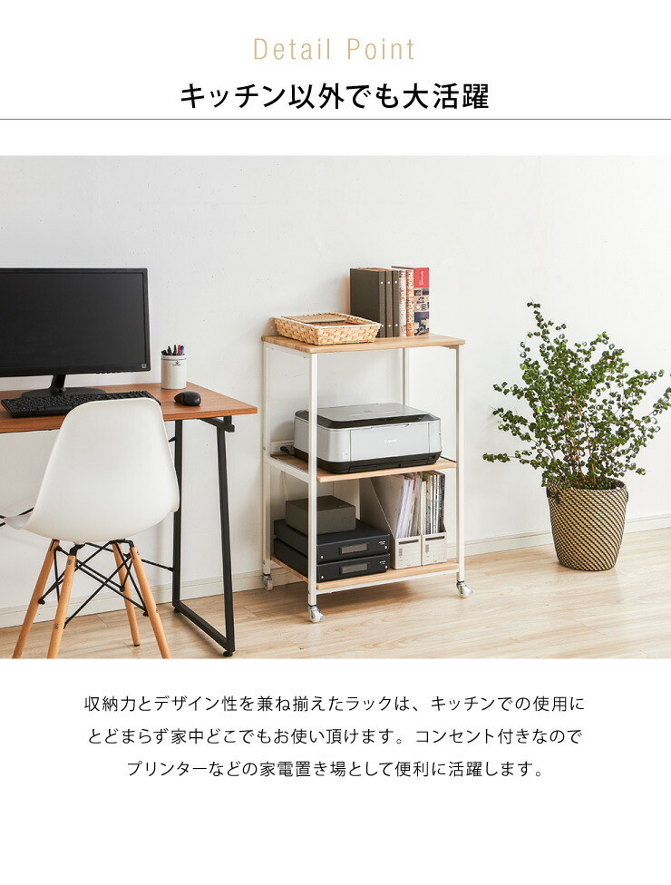 ヴィンテージ調 レンジラック 幅60cm コンセント キャスター付き スライド棚 アイアン レンジ台 レンジボード ナチュラル