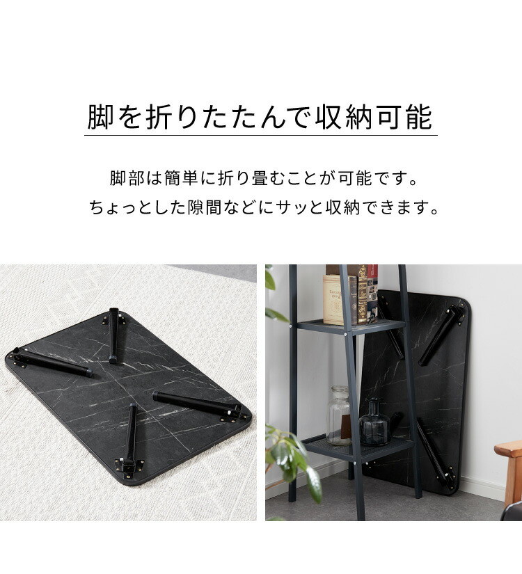 折りたたみテーブル 大理石柄 75×50 長方形 ローテーブル コーヒーテーブル センターテーブル リビングテーブル ホワイト(大理石柄)