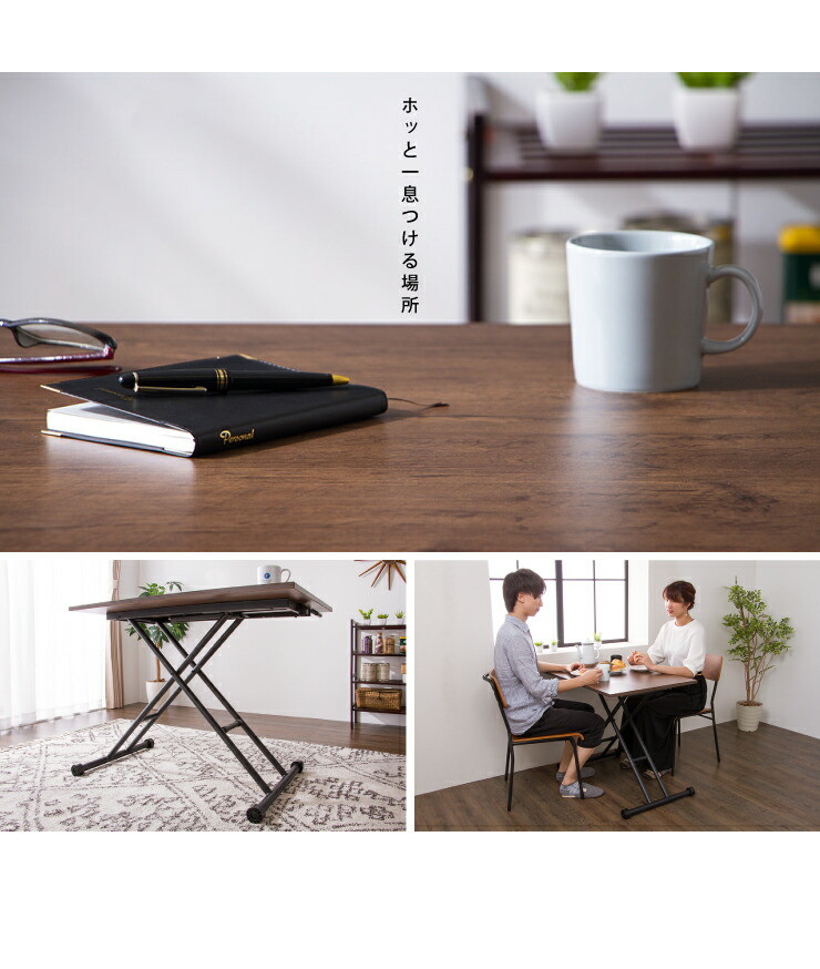 テーブル 昇降式 ガス圧昇降式テーブル 90×60cm ブラウン