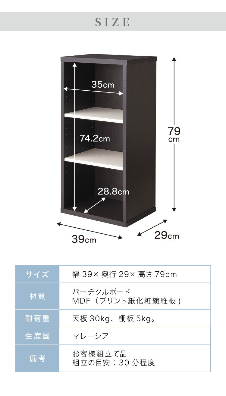 耐荷重:天板30kg、棚板5kg。お客様組立て品[組立の目安:30分程度]