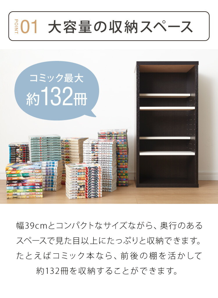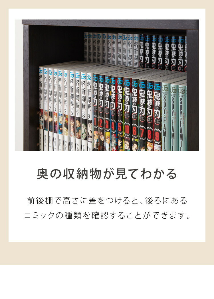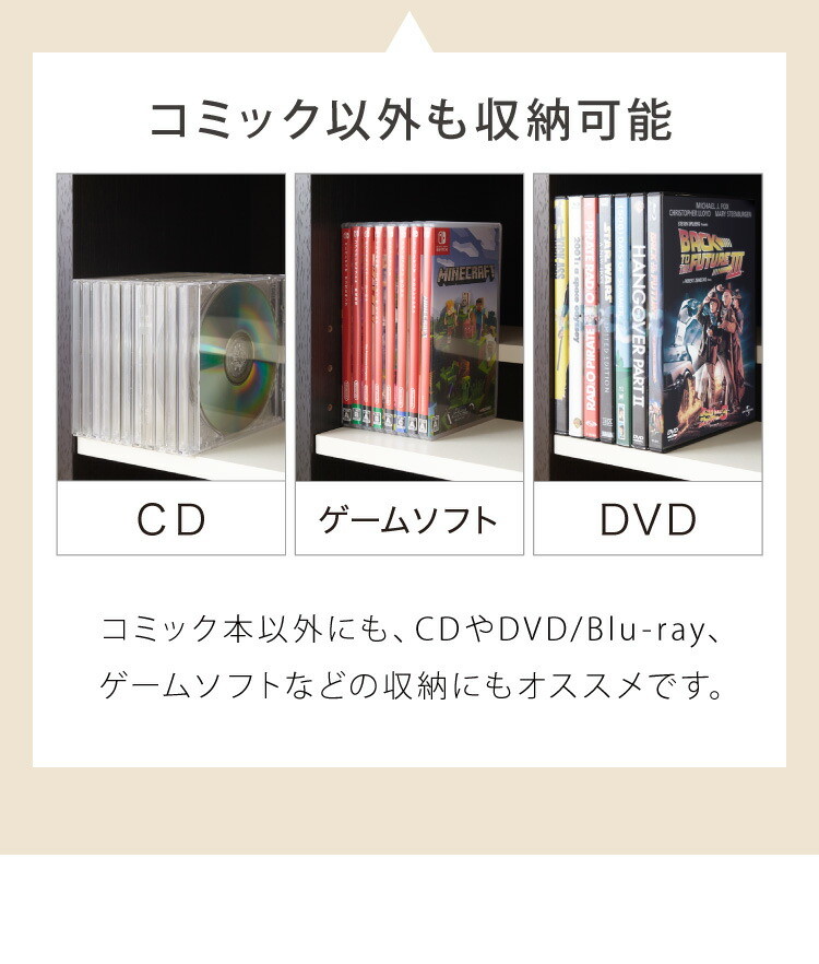 コミック・CD・DVD・ブルーレイディスクなど、コレクションに合わせてチョイスできる豊富なバリエーションと圧倒的な収納力が自慢です。