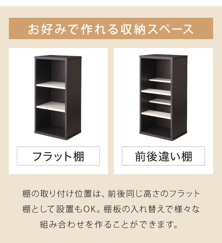 前後棚段違い、フラットパターンは組み立て時に自由にお選びいただけます。