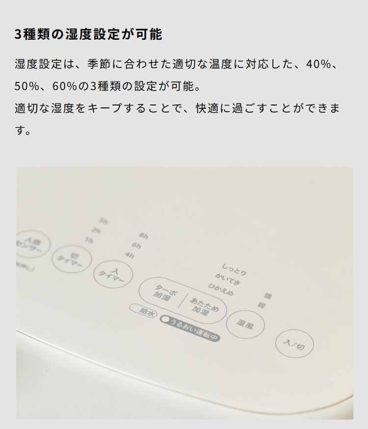 ・加湿運転:40%・50%・60%・連続