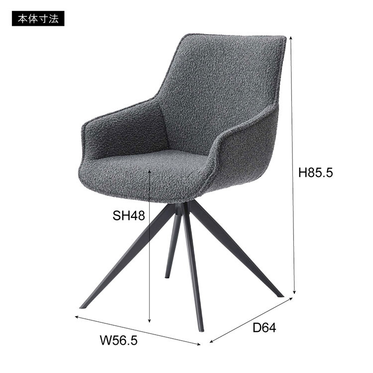立体的で動きのあるファブリックを採用し、シンプルで洗練された印象の回転チェア。