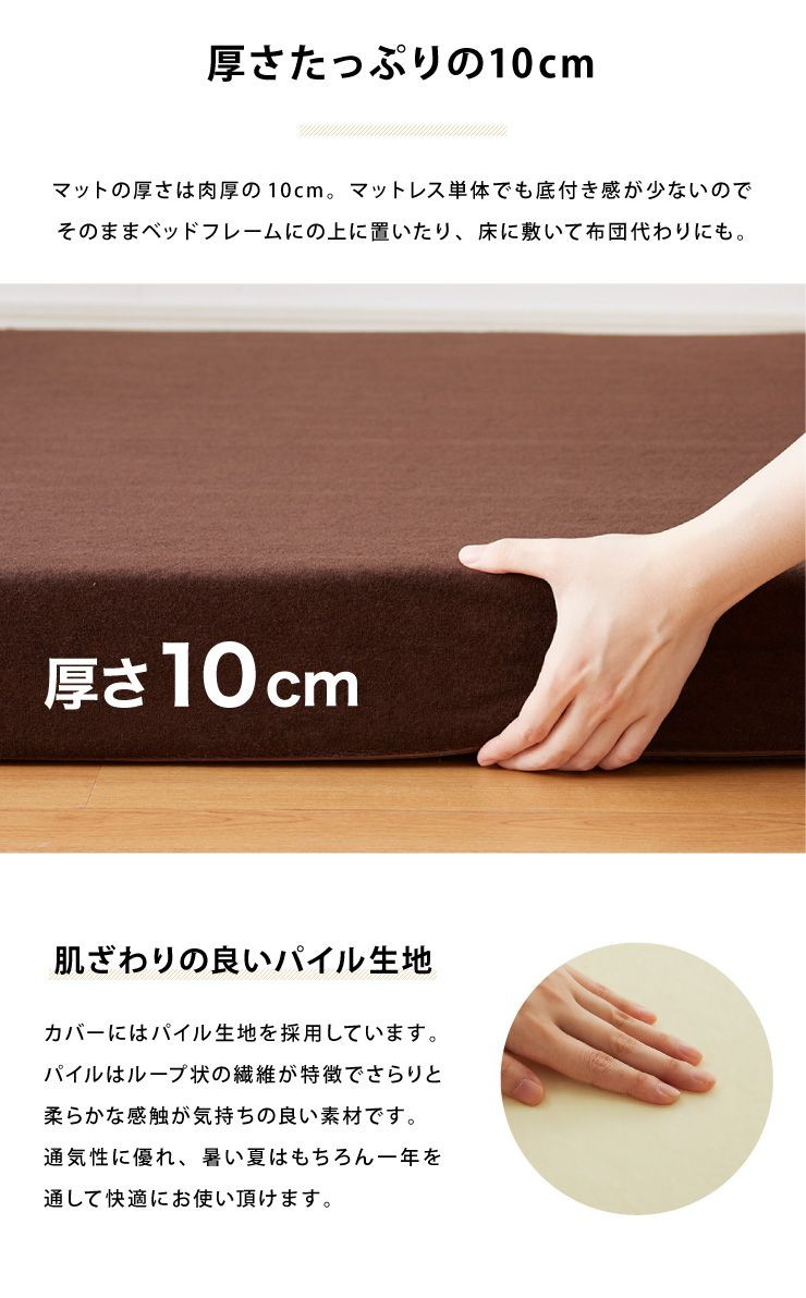| 原材料/素材/材質 | 側生地:ポリエステル100% 中材:高反発ウレタンフォーム(密度25D、190N) |