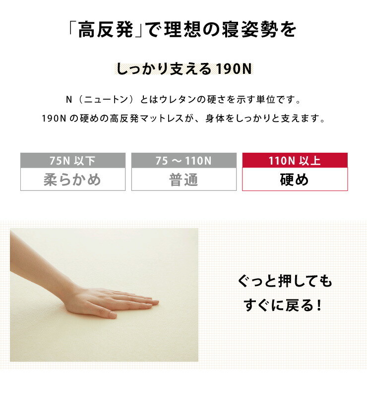 ・中材:高反発ウレタンフォーム(密度25D、190N)
