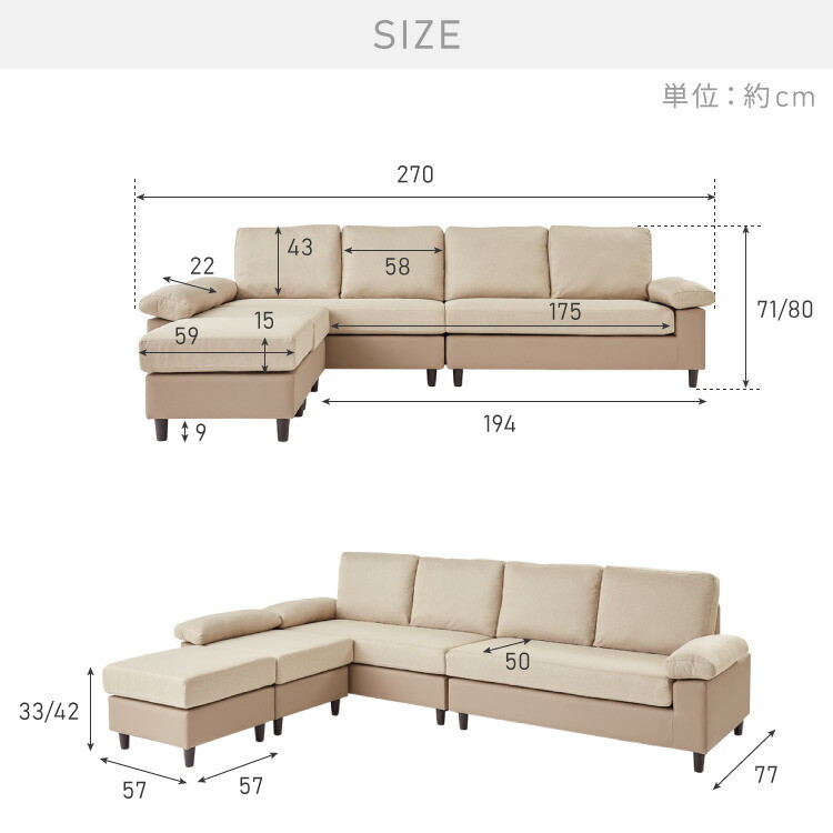 幅270×奥行77×高さ71~80cm