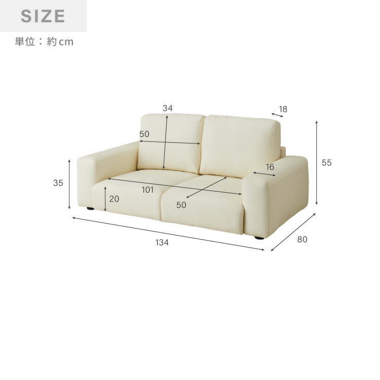 2人掛け(約):幅134×奥行き80×高さ55cm