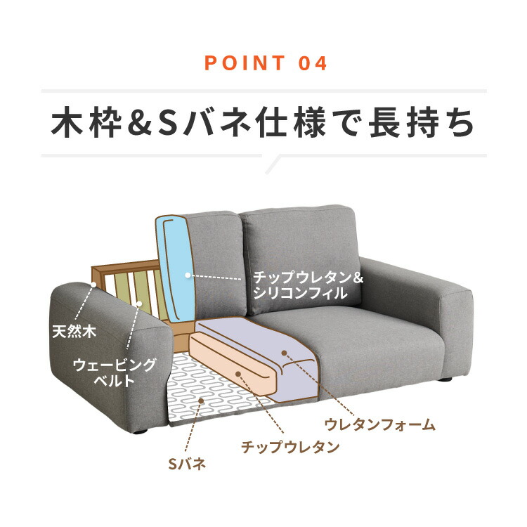 [構造部材]木材/Sバネ/ウェービングベルト/チップウレタン/ウレタンフォーム
