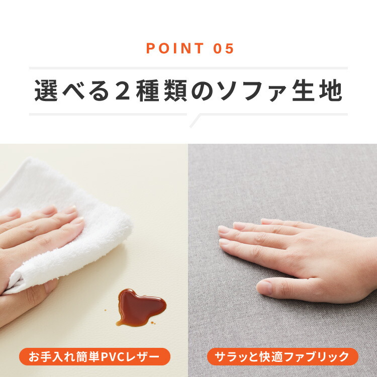 | 原材料/素材/材質 | [表地]ファブリック(ポリエステル100%)、フェイクレザー [構造部材]木材/Sバネ/ウェービングベルト/チップウレタン/ウレタンフォーム [クッション中材]シリコンフィル [脚部]プラスチック脚 |