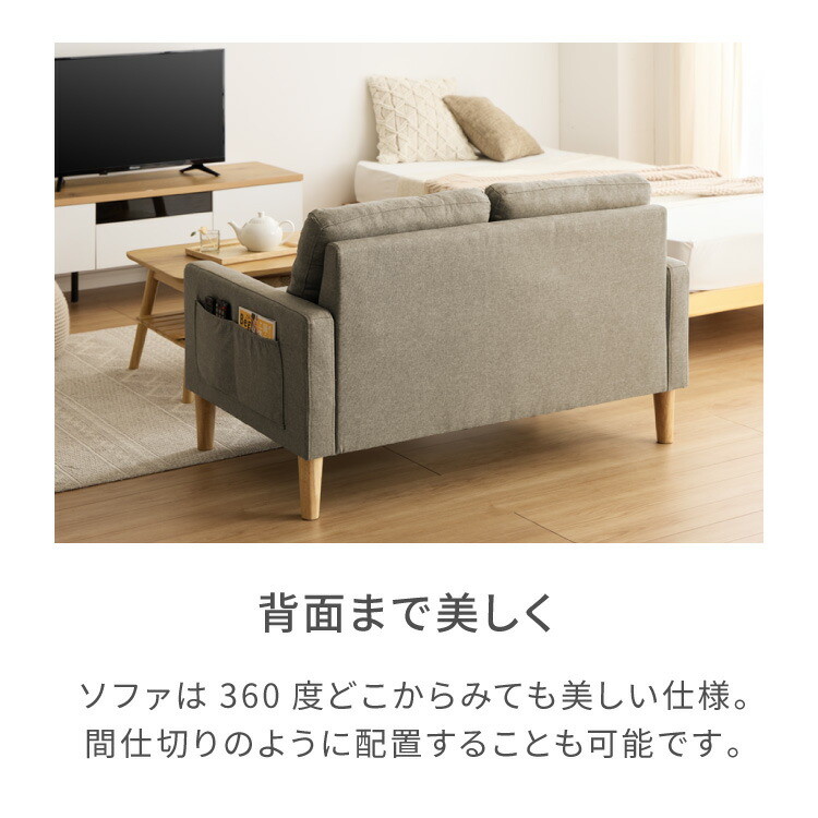 ソファ 2人掛け 幅 114cm 奥行 70cm コンパクト ソファー オットマン 座面 広い 木脚 クッション 肘置き グレージュ