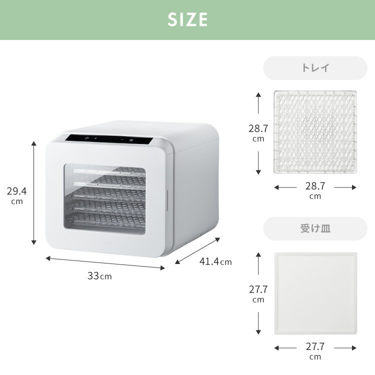 トレイは食品グレード素材を使用し、安心して食材を乾燥・発酵できます。