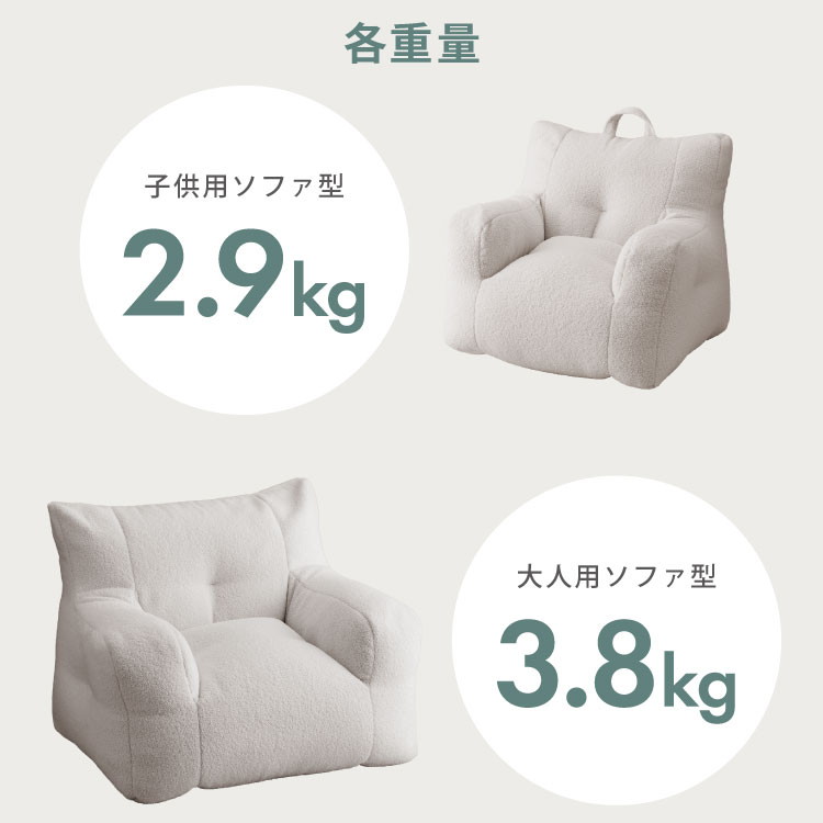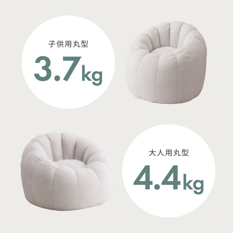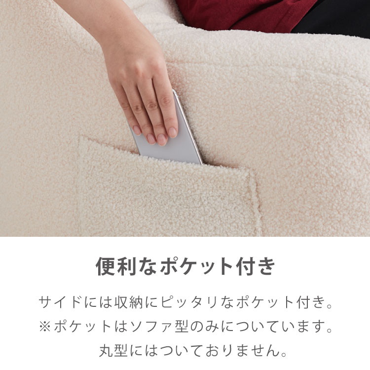 【roomnhome×リコメン堂】 ビーズクッション 1人掛けソファ ポケット付き 選べる2サイズ 円形 ソファ型 子供用 丸形ホワイト