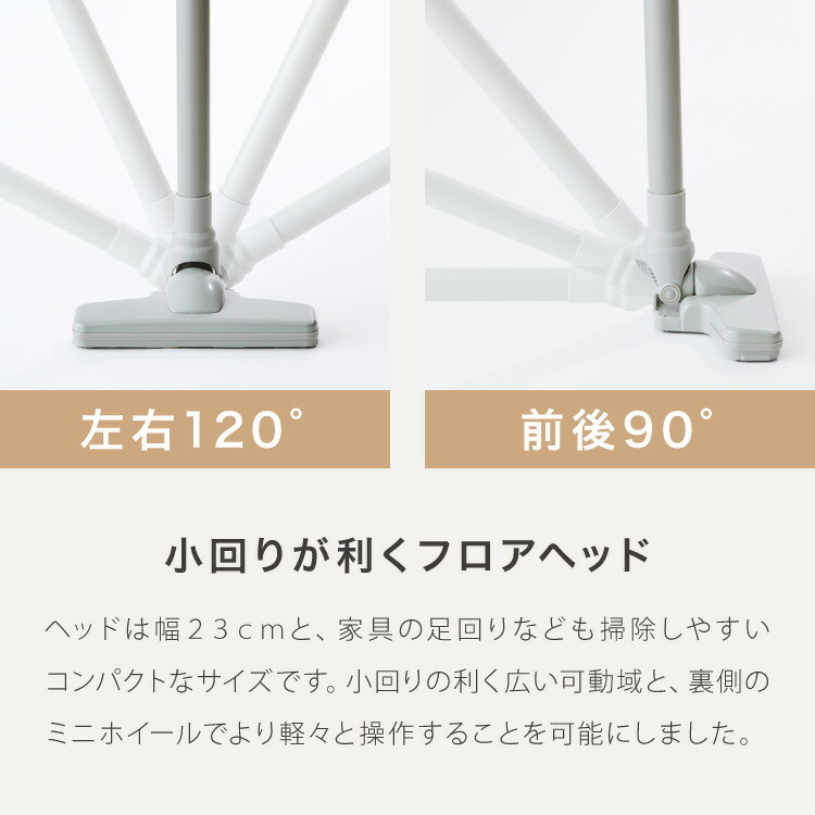 持ち手はシンプル握りやすいグリップ。片手での掃除も快適です。