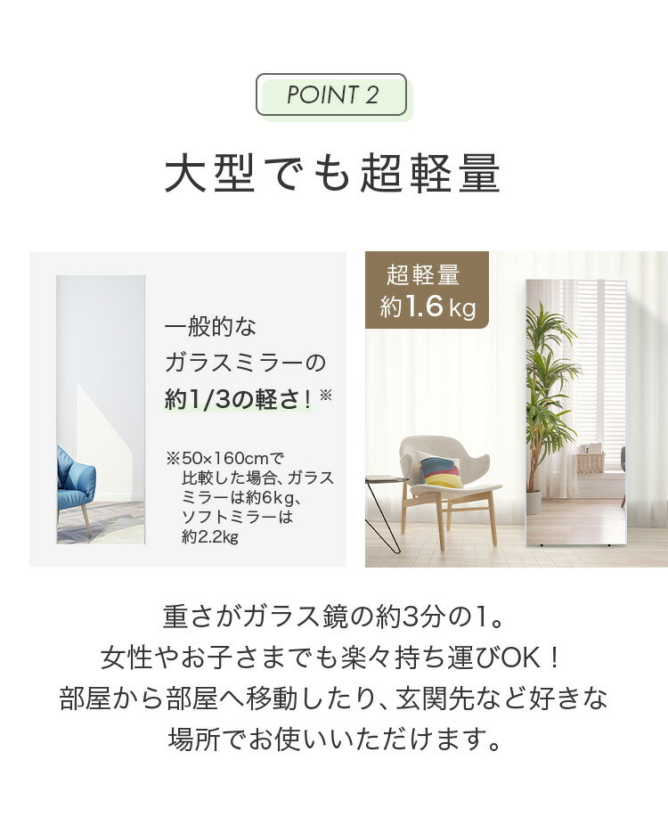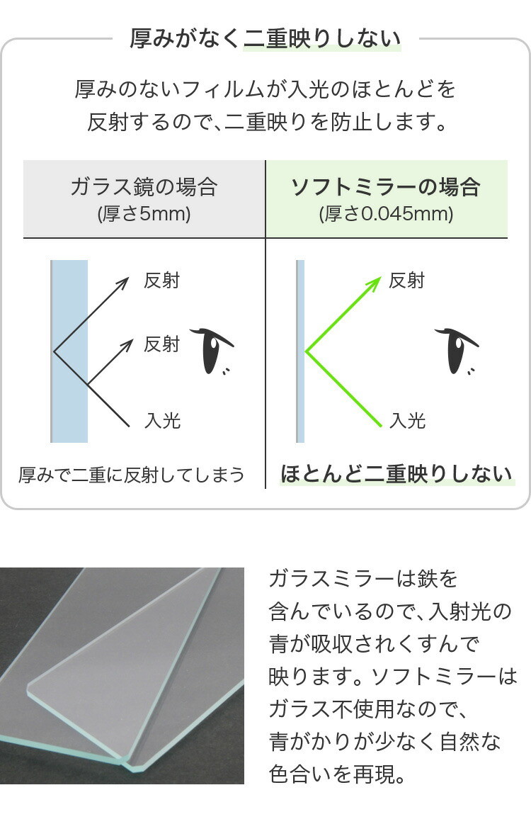 ・離れても歪みにくく全身鏡にぴったり