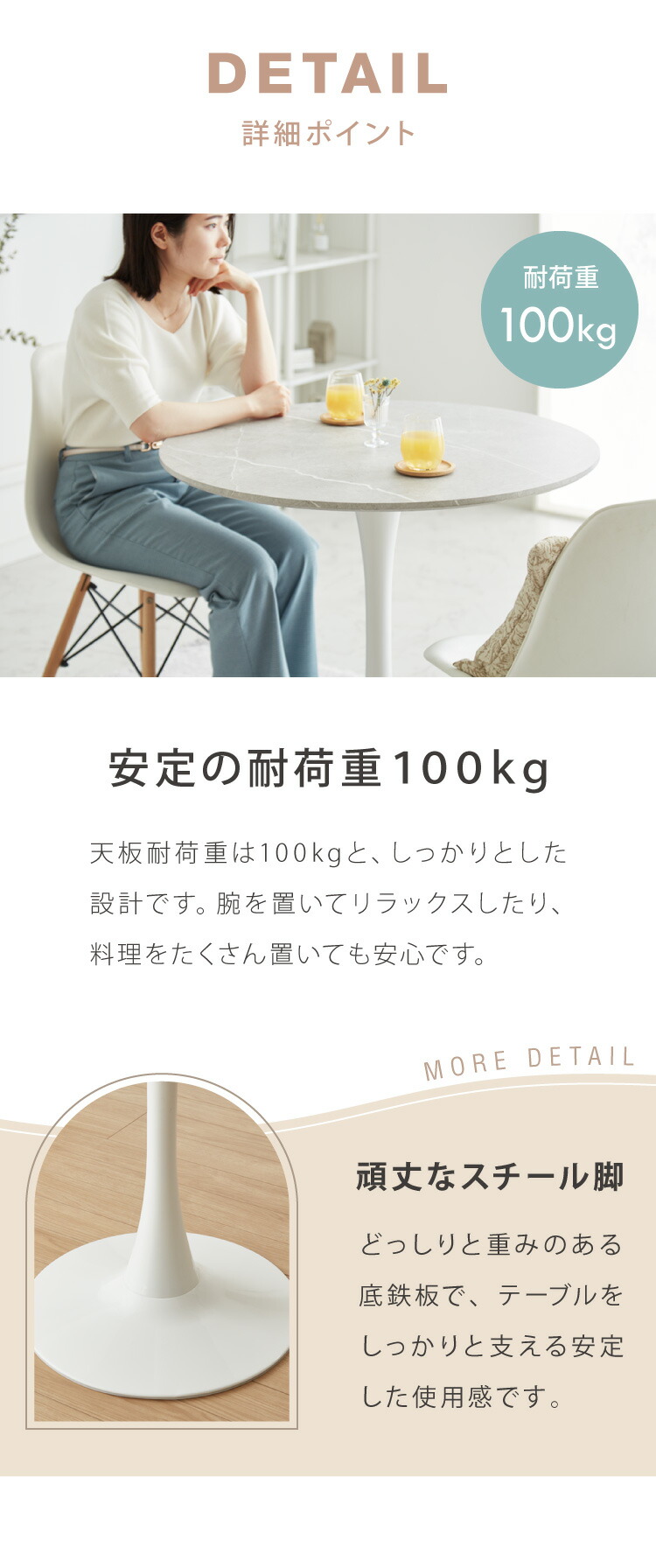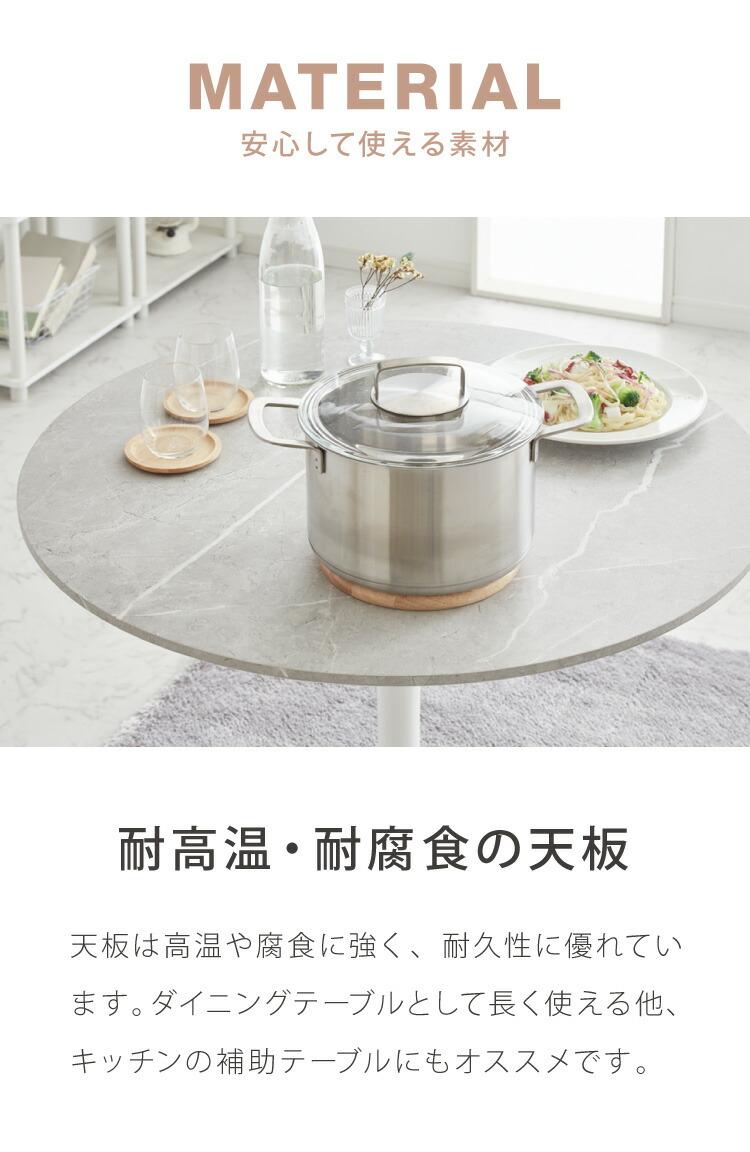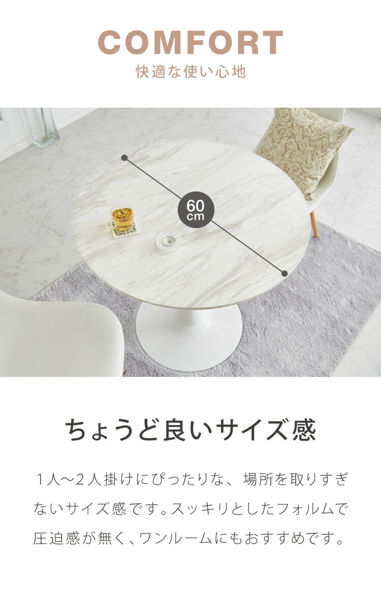 ダイニング丸テーブル 大理石色 幅60cm マーブルホワイト