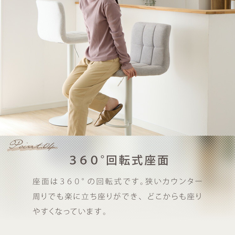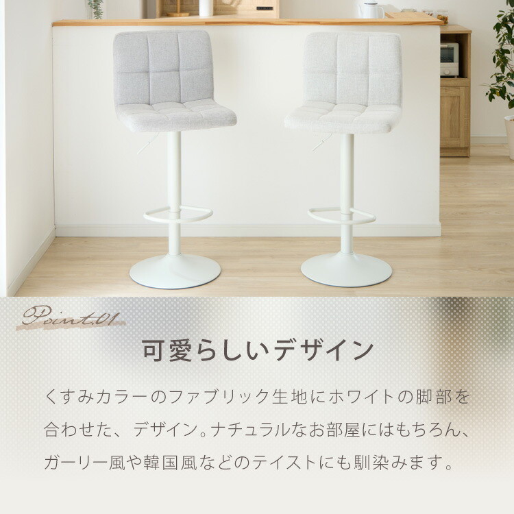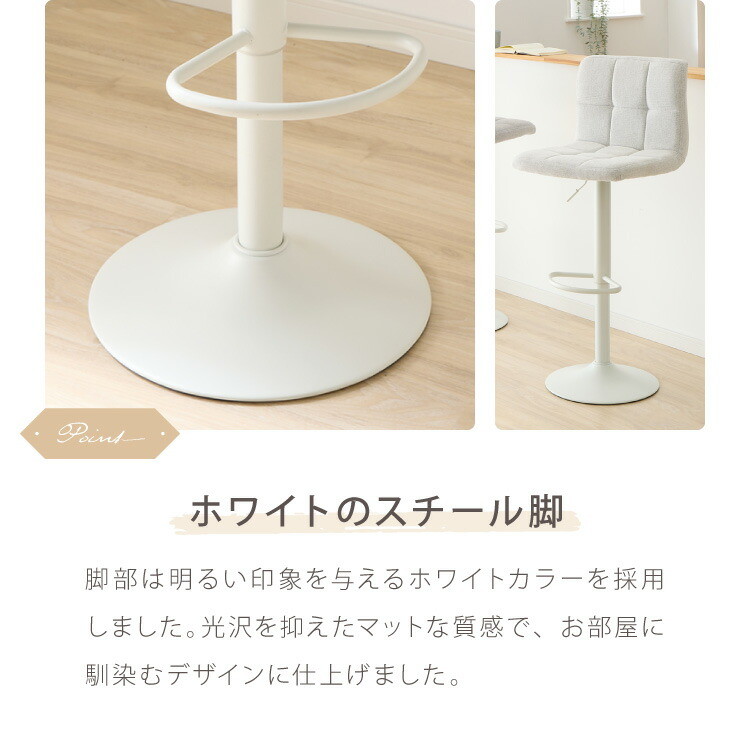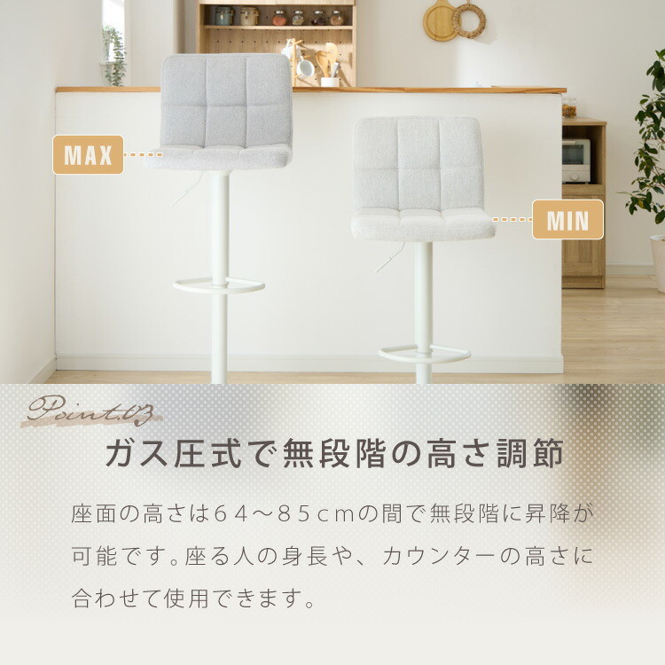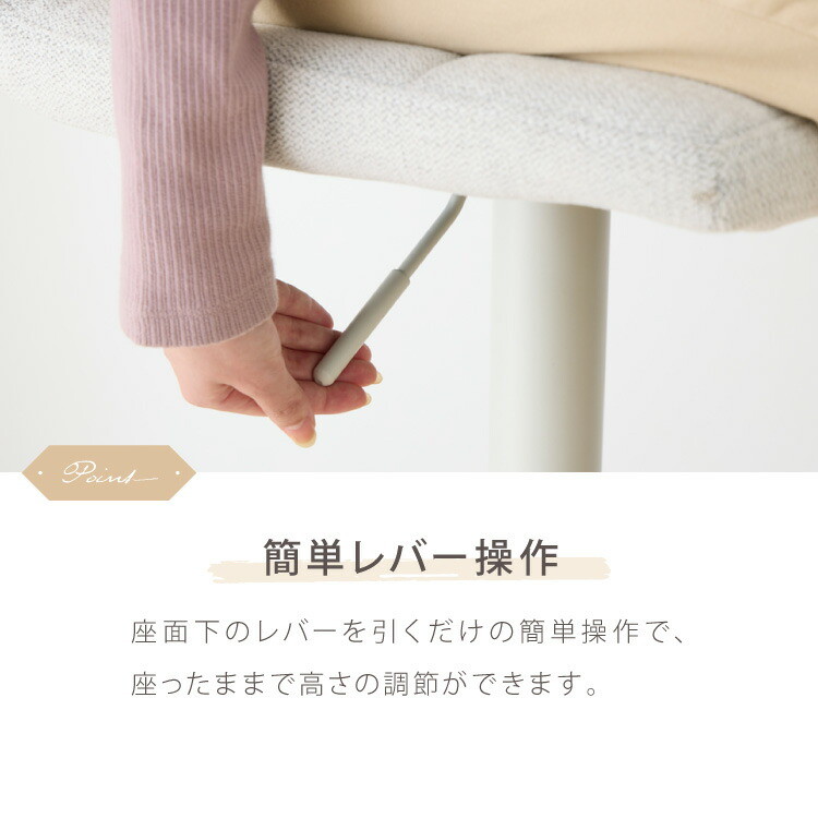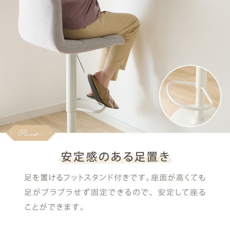 カウンターチェア 1脚 2脚 ガス式 ガス圧昇降式 昇降式 ファブリック 背もたれ付き 回転 モダン 北欧 カフェ バー ミルクティベージュ 1脚