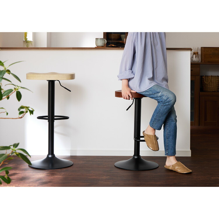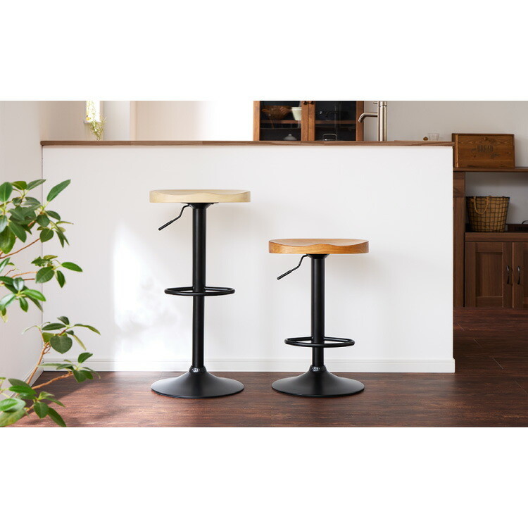 カウンターチェア 2脚セット 1脚 木製 天然木 昇降 回転 高さ調節 北欧 モダン 上下昇降式 ハイチェア バーチェア カフェ ヴィンテージブラウン 1脚
