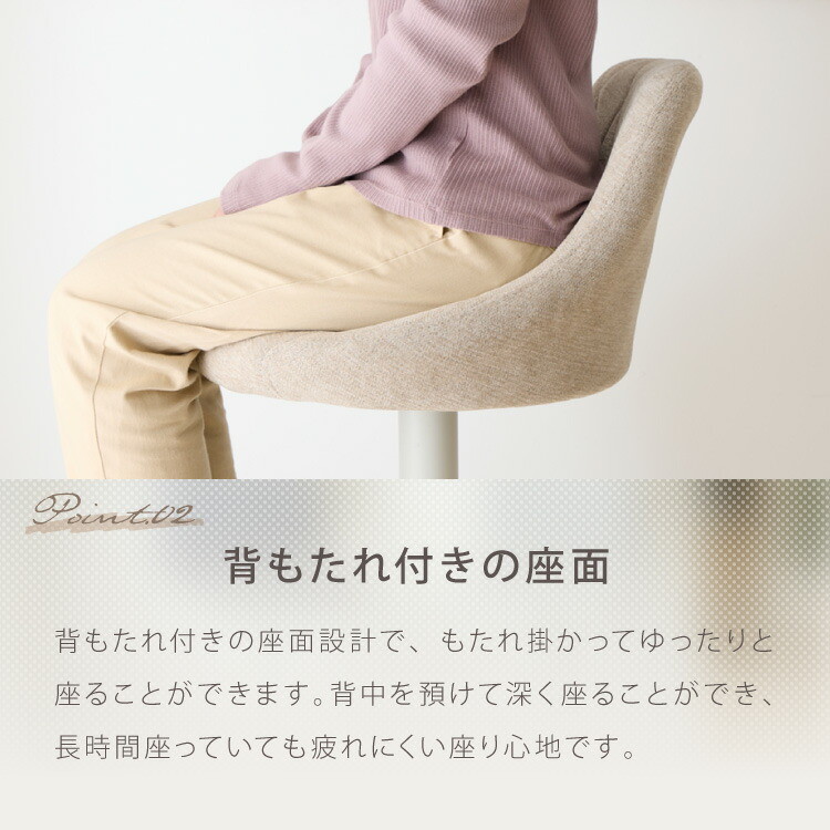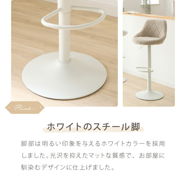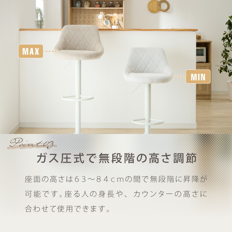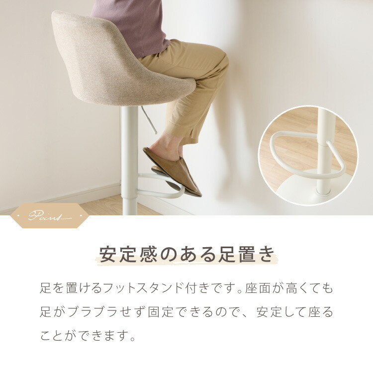 カウンターチェア、ガス圧、回転式、昇降式、ガス圧昇降、背もたれ付き、ファブリック、かわいい