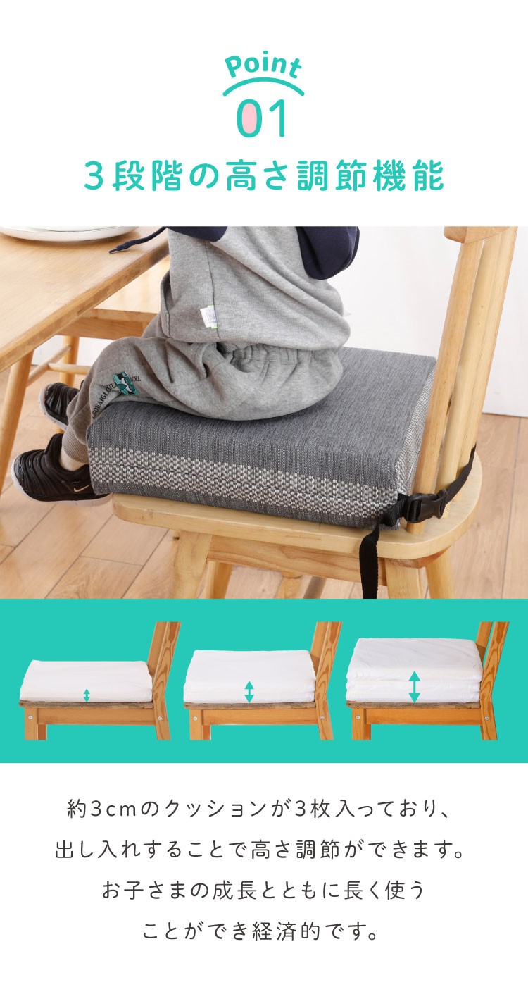 お食事クッション 高さ調節 3段階 ブルーグレー