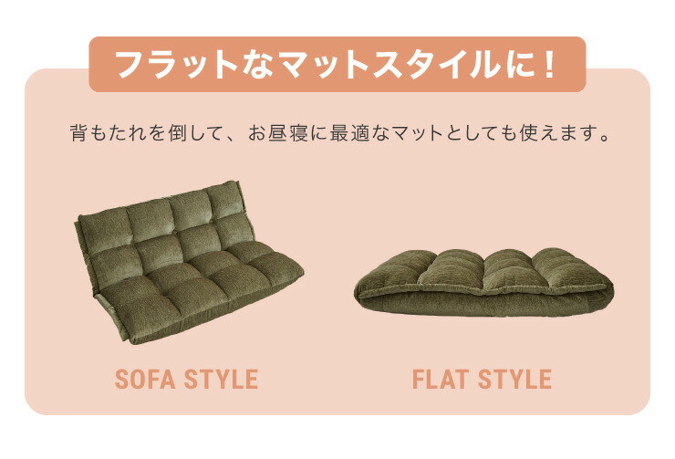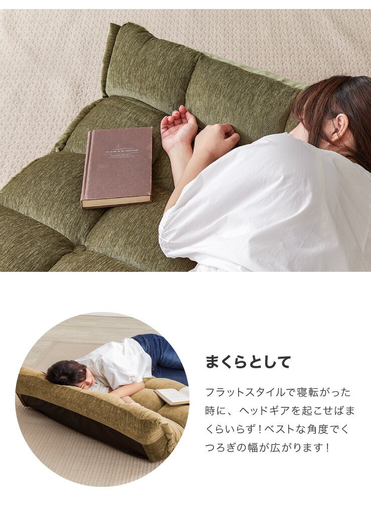 ソファ フロアソファ リクライニング 座椅子 2人掛け リクライニングチェア グリーン