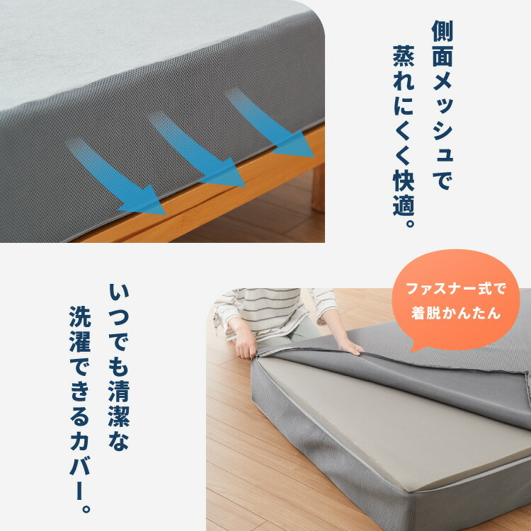 | サイズ/寸法 | セミシングル:幅80×長さ180×厚さ20cm シングル:幅97×長さ195×厚さ20cm セミダブル:幅120×長さ195×厚さ20cm ダブル:幅140×長さ195×厚さ20cm クイーン:幅160×長さ195×厚さ20cm キング:幅180×長さ195×厚さ20cm 許容範囲:±5% |