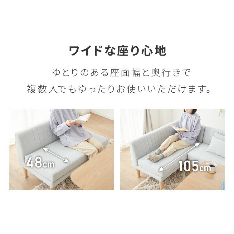 | サイズ/寸法 | [全体サイズ]幅168×奥行120×高さ65(座面高さ39)cm [2Pソファ]幅105×奥行63×高さ65(座面高さ39)cm [アームソファ]幅120×奥行63×高さ65(座面高さ39)cm [脚部高さ]20cm |