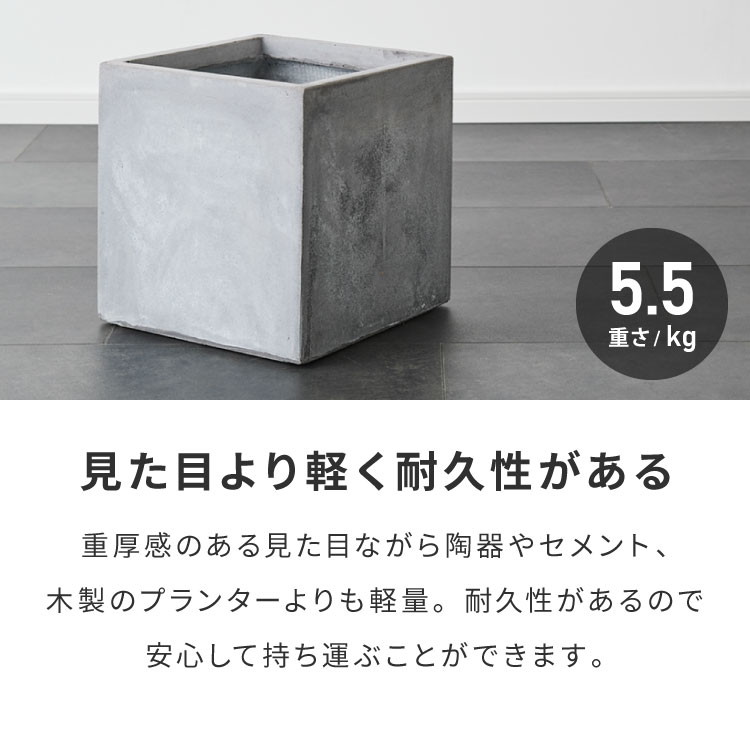・重厚感のある見た目ながら陶器やセメント、木製のプランターよりも軽量です
