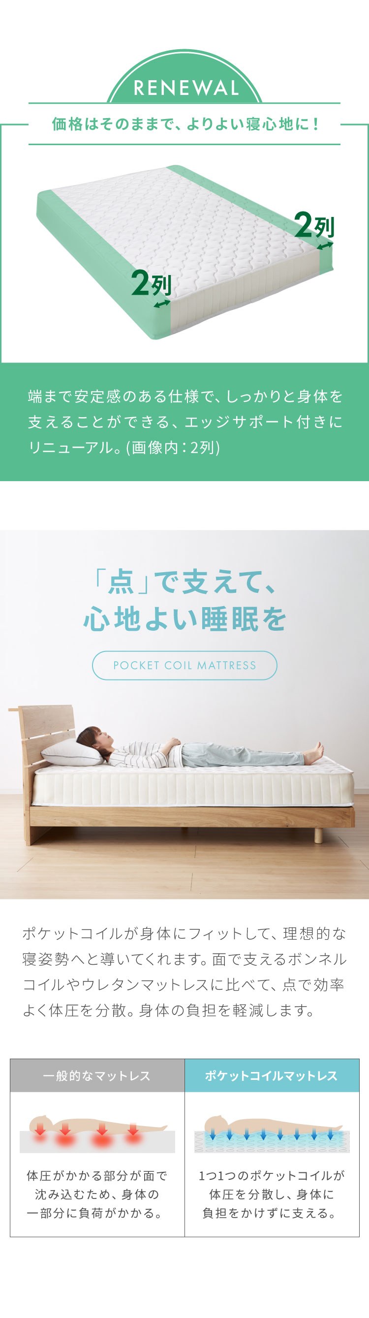 ポケットコイル マットレス エッジサポート 厚さ20cm ホワイト シングル