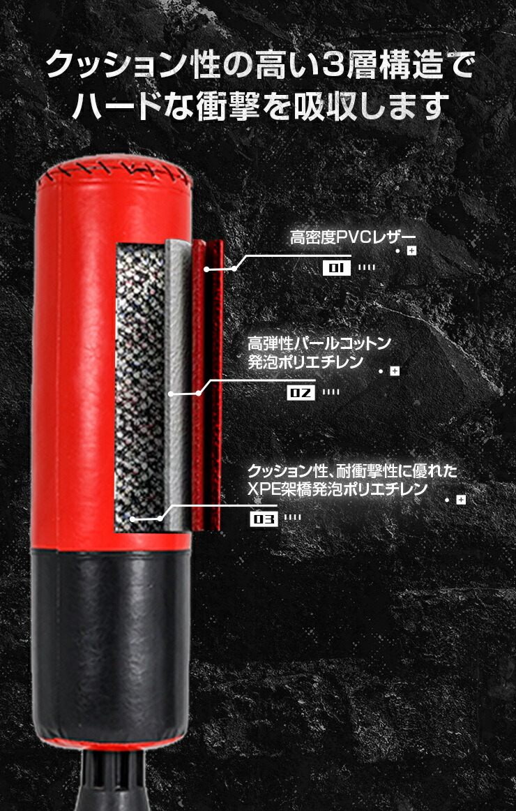 | サイズ/寸法 | 高さ:約160cm サンドバッグ:約直径30cm×高さ110cm 土台:約直径50cm×高さ50cm |