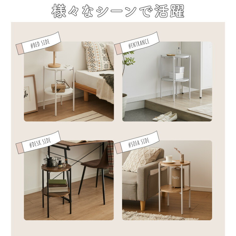 サイドテーブル おしゃれ 2段 幅37cm 高さ52cm コンパクト テーブル ミニテーブル 丸 ラウンド ナイトテーブル ブラウン