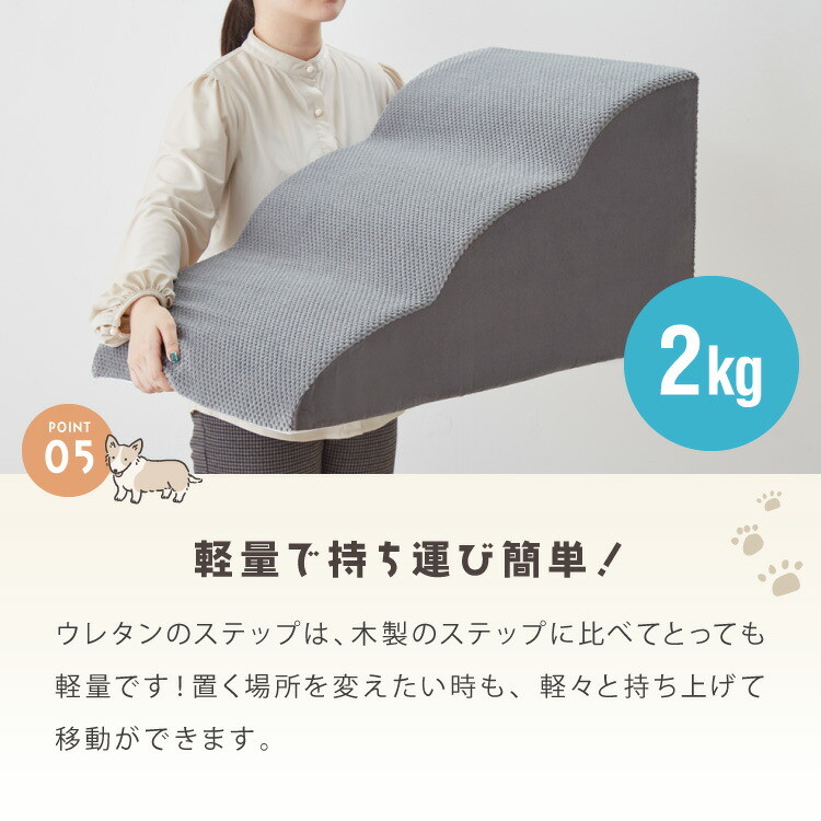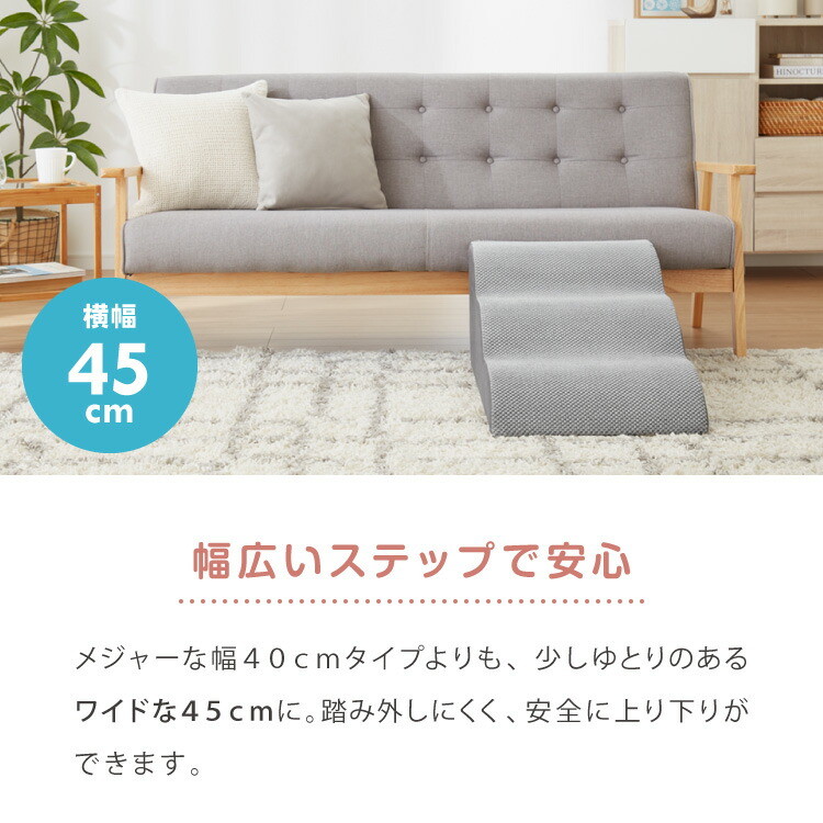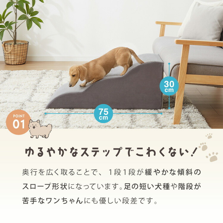 ドッグステップ 3段 スロープ 幅45cm ドッグスロープ グレー