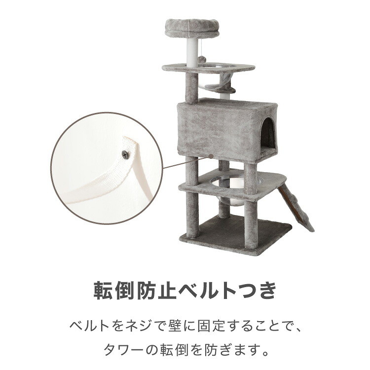 ・ベルトをネジで壁に固定することで、タワーの転倒を防ぎます。