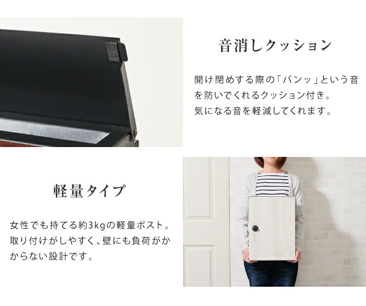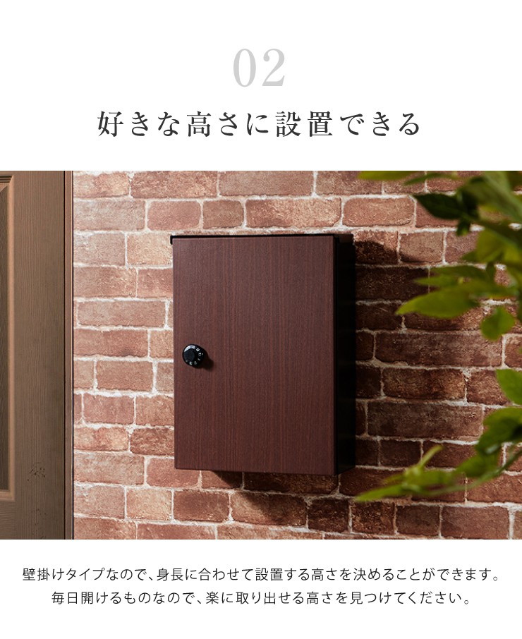 郵便ポスト 壁付け ポスト 木目調 北欧 ダイヤル式 壁掛け 鍵付き メールボックス ブラック
