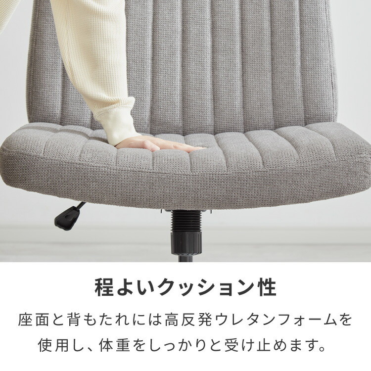 座面幅約65cmの大き目設計で、あぐらがかけるデスクチェアです。