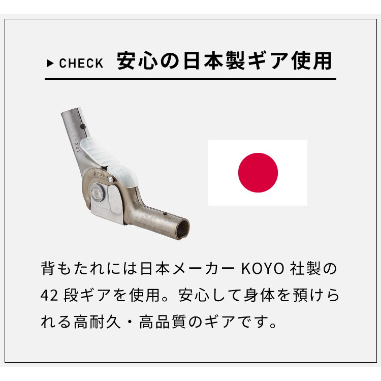 ・背もたれは42段階リクライニングで細かく調節が可能です